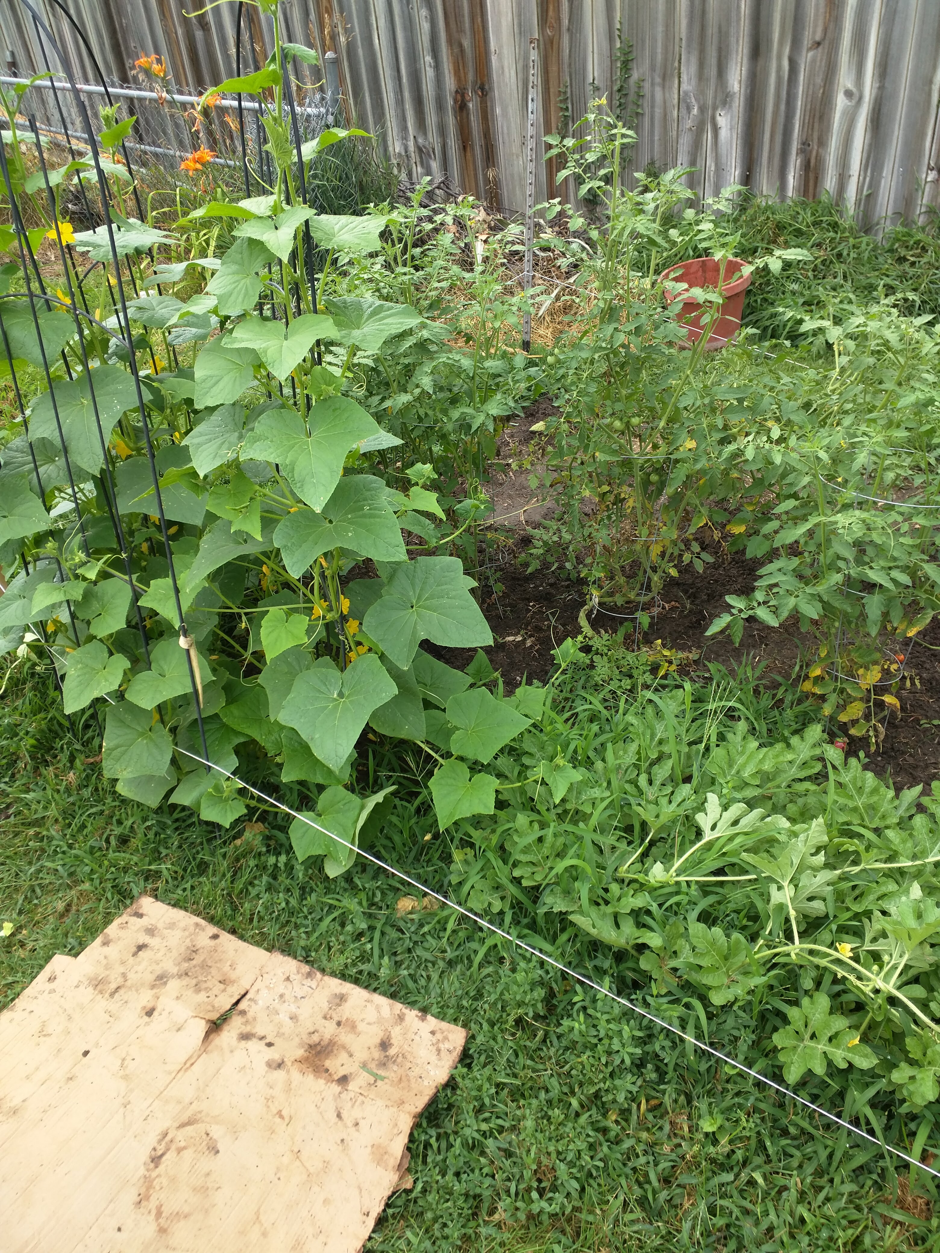 Once she had to leave for work, i decided it was time to get out there and dig in and get dirty getting these weeds and grass up. I found some cardboard in the garage and opened it up and layed it on the wet grass so i didn’t have to get too damp and got started. I ended up pulling the rest of the corn as it had no kernels, no silk, and a couple were iffy looking at best when upened a bit to peak inside. I worked my way around the garden and ended up getting most all the grass from around the tomatoes, peppers, and watermelon. But ended up wearing myself out before i could finish the picking of the ever fast growing weeds. I think it turned out pretty good, and should be ready to plant some stuff for a fall harvest. As to what those are, i’m still working that part out and should have it nailed down and planted soon. With all the care and weeding, i find myself wishing there were more hours in the day sometimes.
