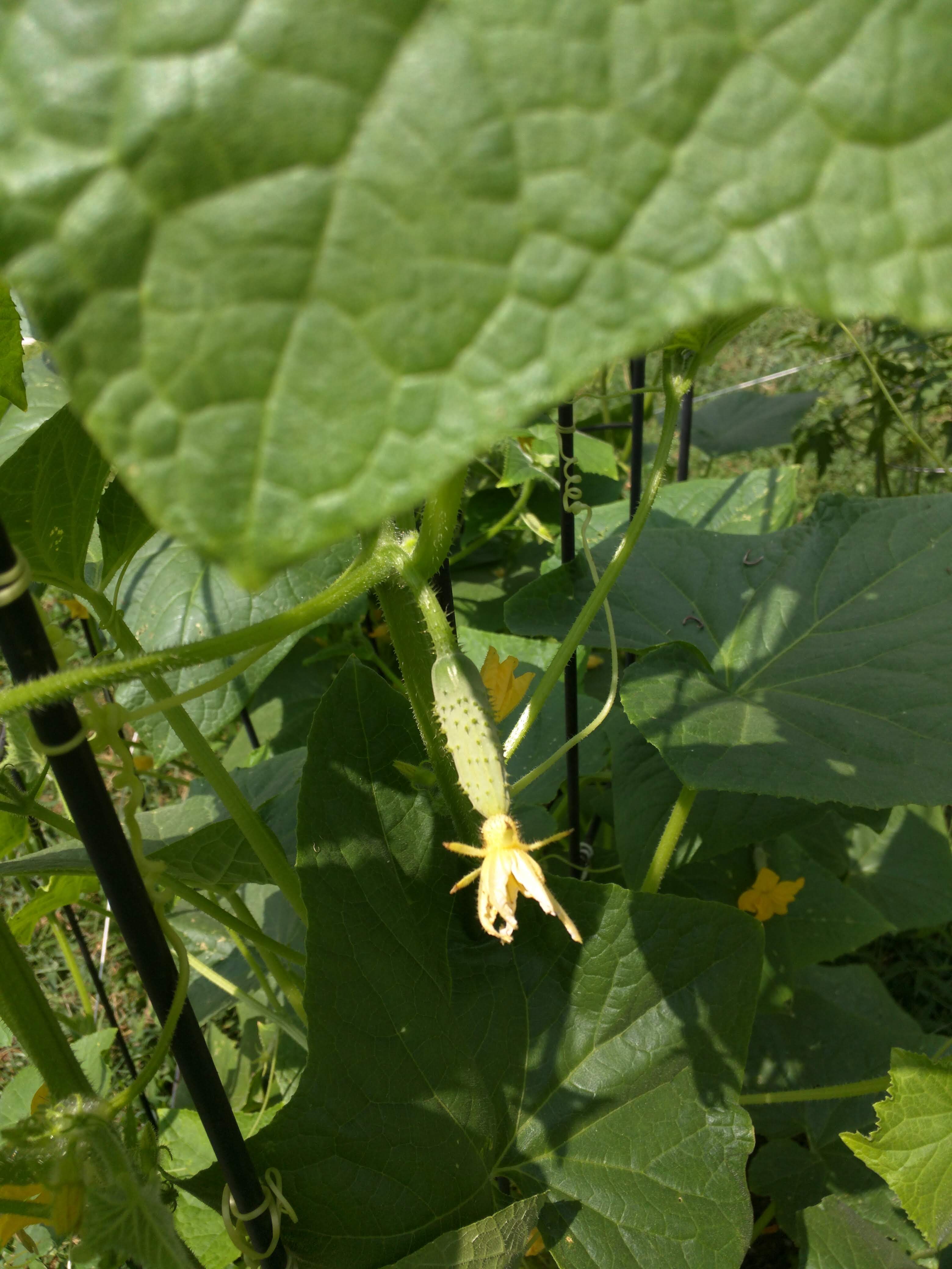 Now i’m not sure if it’s just me but this plant is by far my favorite, simply for the fact that it produces so much in such a short time, It grows like a weed, trying to take over whatever space it can get its itty bitty tendrils around, once it starts growing in a spot it just takes over. For this fact alone this is my favorite plant in the garden as of yet. I ended up only planting two plants for the cucumbers and it looks almost like a jungle growing up along the trellis. I searched the plants to make sure i didn’t need to clip it today and i found two fully formed cucumbers that were trying to hide away from me.
